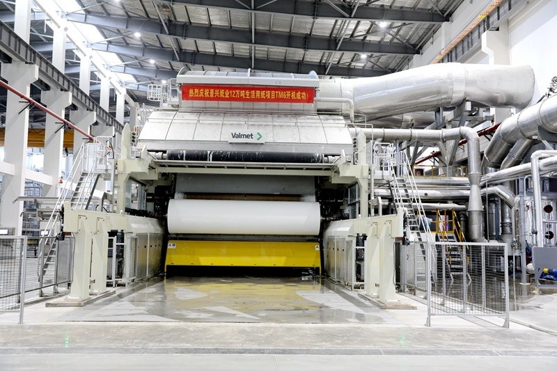 太阳集团官网于2020年开始规划建设两条年产6万吨的生活用纸生产线。TM5纸机已于1月20日开机出纸。
